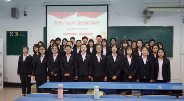 2018级各团支部团学青年皆身着正装,在团支书的带领下开展团日活动。一声声庄严的入团誓词,在各个教室中响起,与此同时,各团支部精心准备的团日活动也有序开展,通过合唱国歌、团歌,开展五四运动知识竞赛,话剧演绎以及深入学习习近平总书记纪念五四运动100周年重要讲话等形式,更加生动形象的展现出五四精神的真谛和内涵。