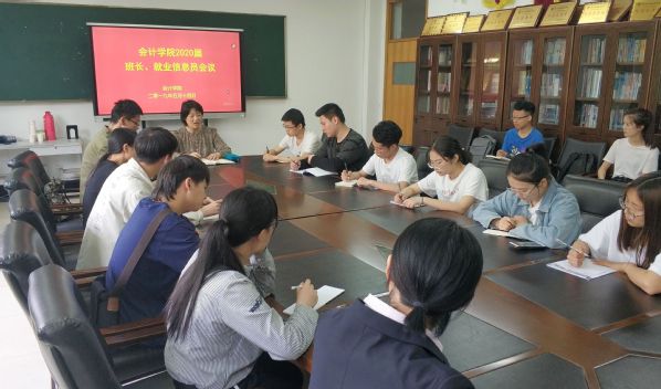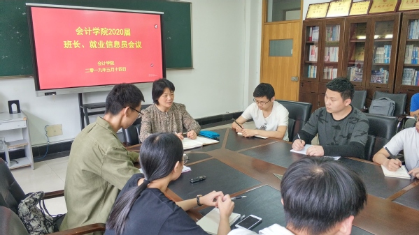 为迎接银行订单班的招聘,更好的为同学们提供就业机会,5月14日中午12点50分,会计学院于7218会议室召开2020届班长、就业信息员会议,本次会议由会计学院党总支副书记邵月花主持。