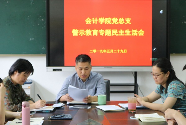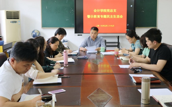 为深入贯彻实施中共浙江省纪委办公厅《关于深入开展全省警示教育月活动的通知》相关精神以及中共浙江省纪委省监委驻教育厅纪检监察组的指示精神,切实推进学校以“七个一”为主要内容的警示教育月活动开展,会计学院于5月29日下午在7218会议室召开了“警示教育”专题民主生活会。本次会议由会计学院党总支副书记、副院长王忠孝主持,会计学院全体党员教师出席。