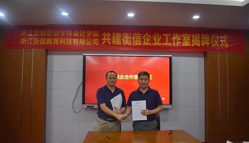 2019年6月19日下午,衡信企业工作室揭牌仪式在浙江金融职业学院行政楼101会议室成功举办,衡信企业工作室由我院发起,联合浙江衡信教育科技有限公司共同成立。