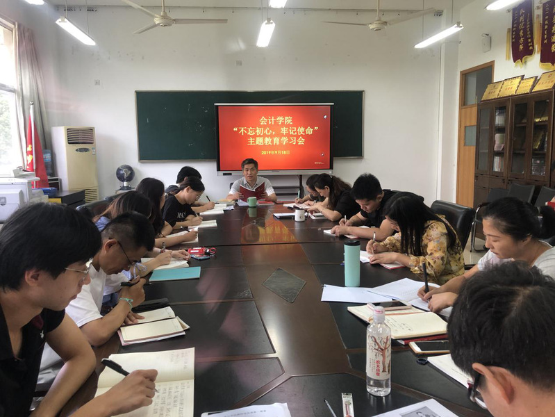 为统一思想认识,提高政治站位,贯彻学校主题教育工作部署,积极推动基层党组织开展主题教育活动,会计学院党总支于9月18日13:00在7218会议室召开“不忘初心,牢记使命”主题教育学习会,参加本次会议的有会计学院党总支副书记兼副院王忠孝、党总支副书记邵月花、副院长李华以及会计学院全体教师党员。本次会议由王忠孝主持。