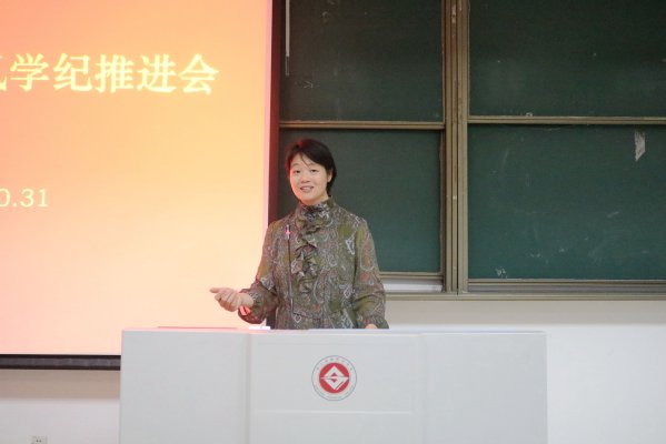 大会伊始,邵月花关于上课出勤、技能锻炼、学习氛围以及考证四个方面对同学们作出了一系列的说明。她指出同学们学习时应当心无旁骛,端正好自学习态度,提高自我发展要求。同时她也希望各班班委做好引领作用,带动起同学们的学习积极性,与班级成员共前进。