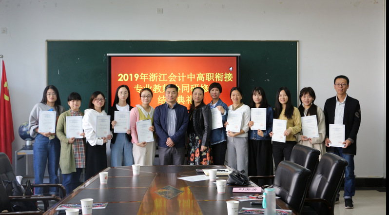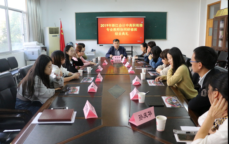2019年10月9日到11月5日,会计学院举办了2019年浙江会计专业中高职衔接专业教师协同研修班。11月5日,会计学院在7218会议室召开了2019年浙江会计专业中高职衔接专业教师协同研修班结业典礼,会计项目负责人王忠孝教授、培训班班主任张惠君副教授,和来自浙江省内中职院校的一线教师们参加了本次结业典礼。