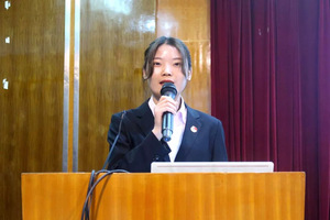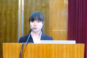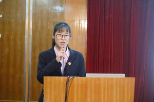 会计学院党支部副书记邵月花发表讲话。首先,她对大会的召开表示诚挚的祝贺。接着,她对新一届的学生干部做出了以下三点要求:一是希望他们加强自身能力的学习与修养,增强政治敏锐性和洞察力,二是用于创新并不断实践,三是乐于奉献积极分享。最后,她希望这次的双代会能够选出一支“政治强、品质优、能力佳、学习好”的优秀队伍,争取带着会计学院团学工作进入一个新的水平。