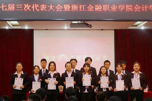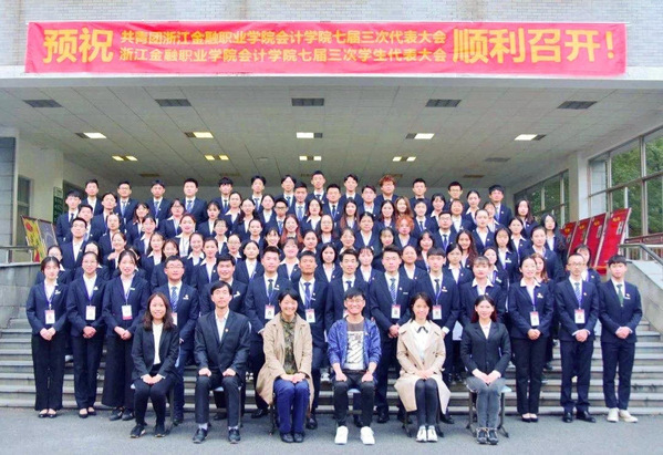 2019年11月6日下午4点10分 ,共青团浙江金融职业学院会计学院七届三次代表大会、七届三次学生代表大会暨学生干部竞聘大会在明理报告厅隆重举行。参加此次大会的嘉宾有会计学院党总支副书记邵月花、校团委副书记许杰、会计学院团总支书记潘宁、辅导员王心怡、金恩芳、叶君红,学生干部候选人和学生代表参会。此次会议由潘宁主持。