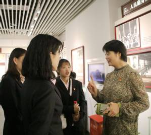 进入场馆,一行人沿着场馆展现的历史脉络和时间顺序进行参观,邵月花对部分展出的图片、文献及实物进行了讲解,同时结合自身经历带领学生党员进一步了解我党的发展历史,场馆中陈列的一段段文字、一幅幅照片,每一件历史文物承载的历史记忆都让学生党员们对党的艰辛历程有了更加深入的了解和认识。