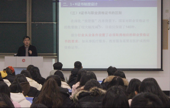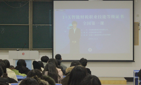 为进一步深化职业院校财经类专业实施“1+X 证书制度试点工作,全面推进“智能财税”1+X证书制度试点工作落地实施,帮助学生加强对智能财税职业技能等级证书的了解,会计学院于12月2号晚在8219教室召开了1+X智能财税职业技能等级证书培训会,会计学院党总支副书记、副院长王忠孝,指导教师孙成龙,教学秘书丁雪梅,以及2017级200多位学生代表参加了此次培训会。