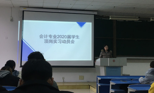 顶岗实习是学校教育、课堂教学的有机补充和必不可少的重要教学环节,是强化学生应用能力和实践技能、实现学生毕业与上岗零过渡的重要途径。为了保证2020届会计专业顶岗实习工作的顺利开展,会计教研室于2019年12月18日中午在7217和7317教室召开了顶岗实习动员大会,2020届会计专业全体学生参加了本次大会。