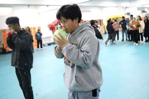 活动分为小山包、气球接力、明三暗三三个内容。活动开始,各班班长团支书依次轮流进行自我介绍,虽然害羞,但是他们之间的距离已经在初次熟识之中被拉近。在小山包的活动中,各小组在支持人的指挥下迅速抱团,看似简单的游戏却需要双方默契的配合。