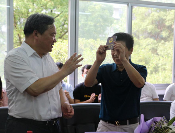 接着,周建松书记为刘俊剑同志颁发荣休证书。