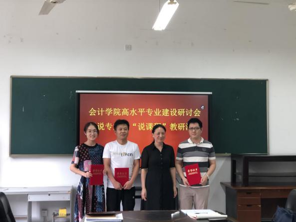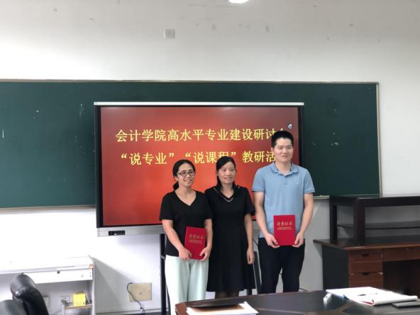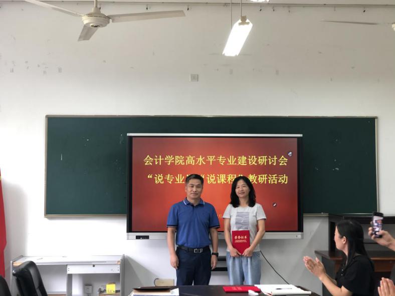 随后,会计学院党总支书记、院长王忠孝公布了“说课程”活动的评奖结果。经过激烈角逐,张亮老师的说课程荣获一等奖,于玲燕、孙成龙老师荣获二等奖,姚军胜、陈树元、吴诗怡老师荣获三等奖。党总支书记、院长王忠孝,副院长张薇,党总支副书记张惠君分别为一等奖、二等奖和三等奖获奖教师颁发了荣誉证书。