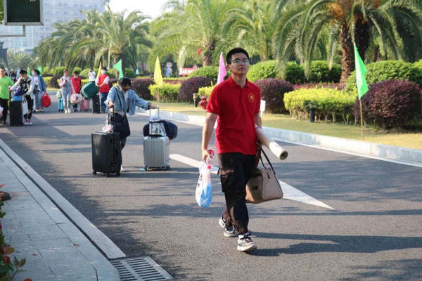 当然,还有一道靓丽的风景线不可错过。志愿者们穿梭在学校的街道,时刻准备向新生们伸出援助之手。等新生办完报到手续,他们便开始给新生引路,帮助他们提行李,路程上偶尔进行一些热心的提醒,例如防诈骗、防推销的有关事项。一整天下来,他们不辞辛苦,来回奔波,为新生们提供贴心到位的服务。