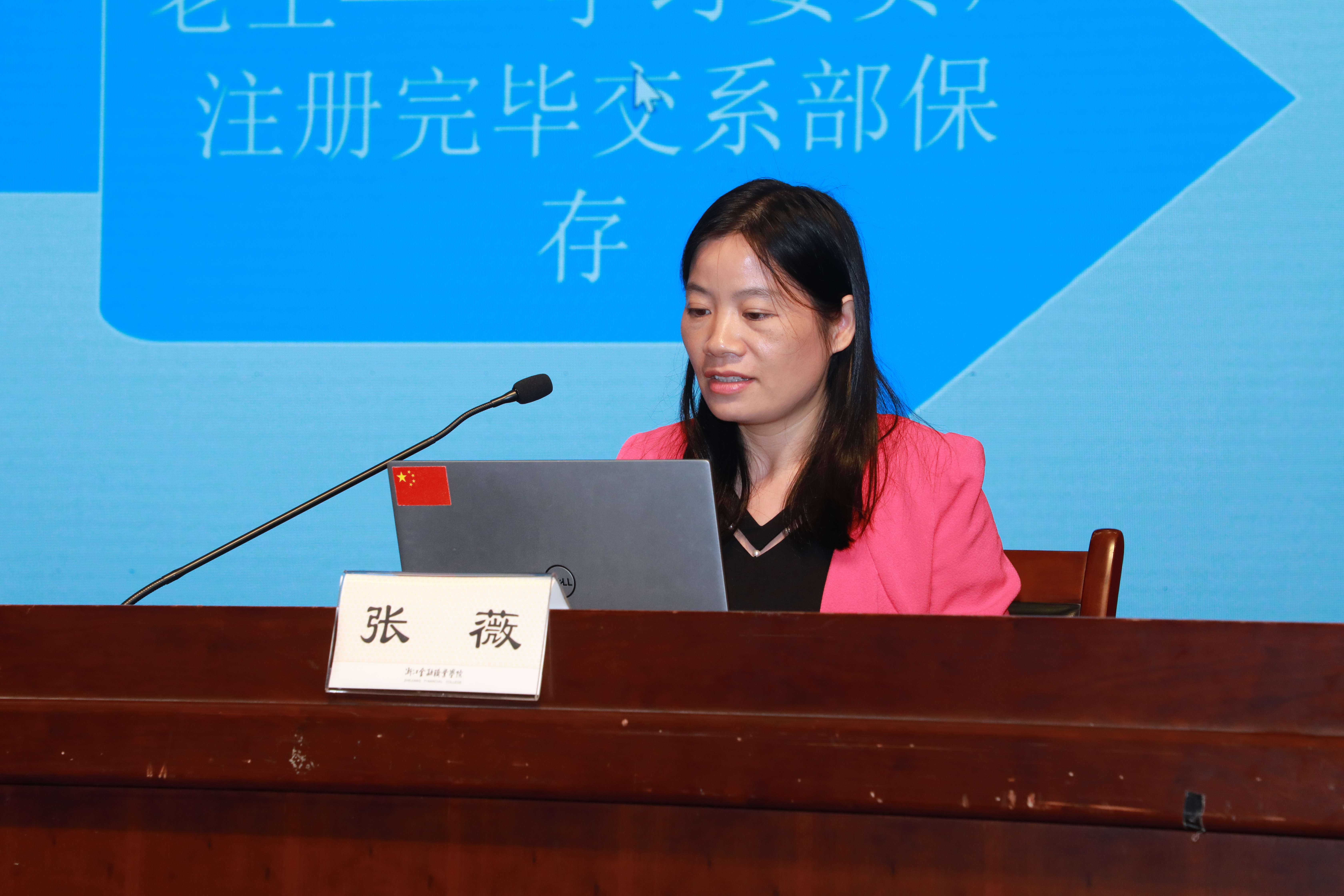 张薇作了以“学业管理与职业发展规划”为主题的专题讲座,从常规教学管理、职业技能提升、学历提高、就业规划等四个方面对同学们的学业和职业发展进行了指导,为同学们的学业规划指明了方向。她强调同学们在学习专业知识的同时,要培养奋力拼搏、立志勤勉的精神,提高综合素质,真正成为一名品德优化、专业深化、能力强化、形象美化的新时代大学生。