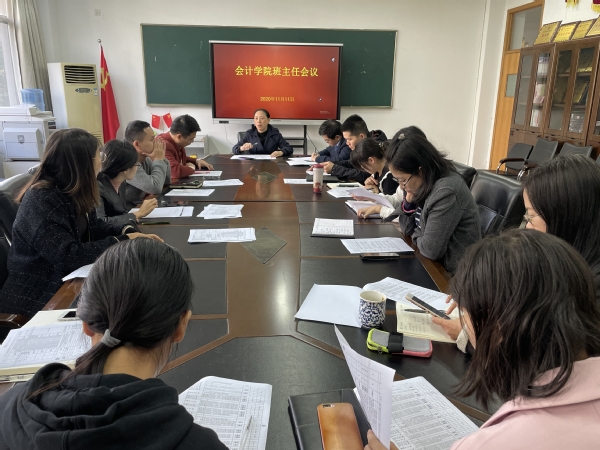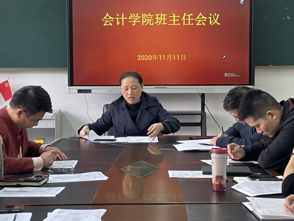 为进一步保证各项学生工作的顺利开展,会计学院于11月11日下午在7218会议室召开全体班主任会议,会计学院党总支副书记张惠君、全体班主任、辅导员参加会议,此次会议由张惠君主持。