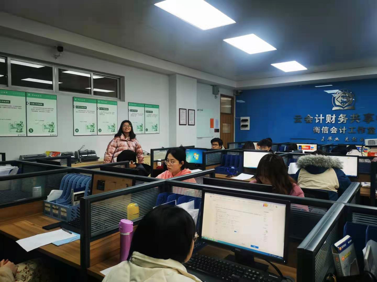 会计学院与浙江衡信教育科技公司共建的衡信会计工作室于2019年正式投入使用,校企共同开展“云会计”代理记账中心实践训练营,第一期、第二期、第三期顺利结束。2021年3月,学院召开“云会计”代理记账中心实践训练营第四期成员选拔活动,参加培训的同学会以工学交替的方式在“云会计”财务共享中心衡信企业工作室(7108教室)进行培训,以两周为一个循环,并由合作企业代理记账中心业务经理全面负责业务指导。