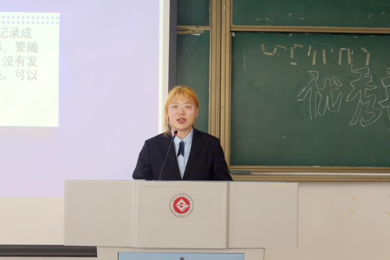 活动开始,各位优秀工作者候选人通过展示PPT总结自己这一个多学期以来的工作和成长,表达对部门学长学姐的感谢,同时展望未来,表明自己将再接再厉为部门做贡献的决心。每位工作者演讲完毕,评委都会提出针对性的问题,帮助他们认识到自己的不足和优势。答辩结束后,由团总支副书记卢黎岚向优秀工作者颁发奖状,以资鼓励。此次答辩活动中,演讲者条理清晰,自信大方;评委们认真负责,对团学工作提出了宝贵的建议。