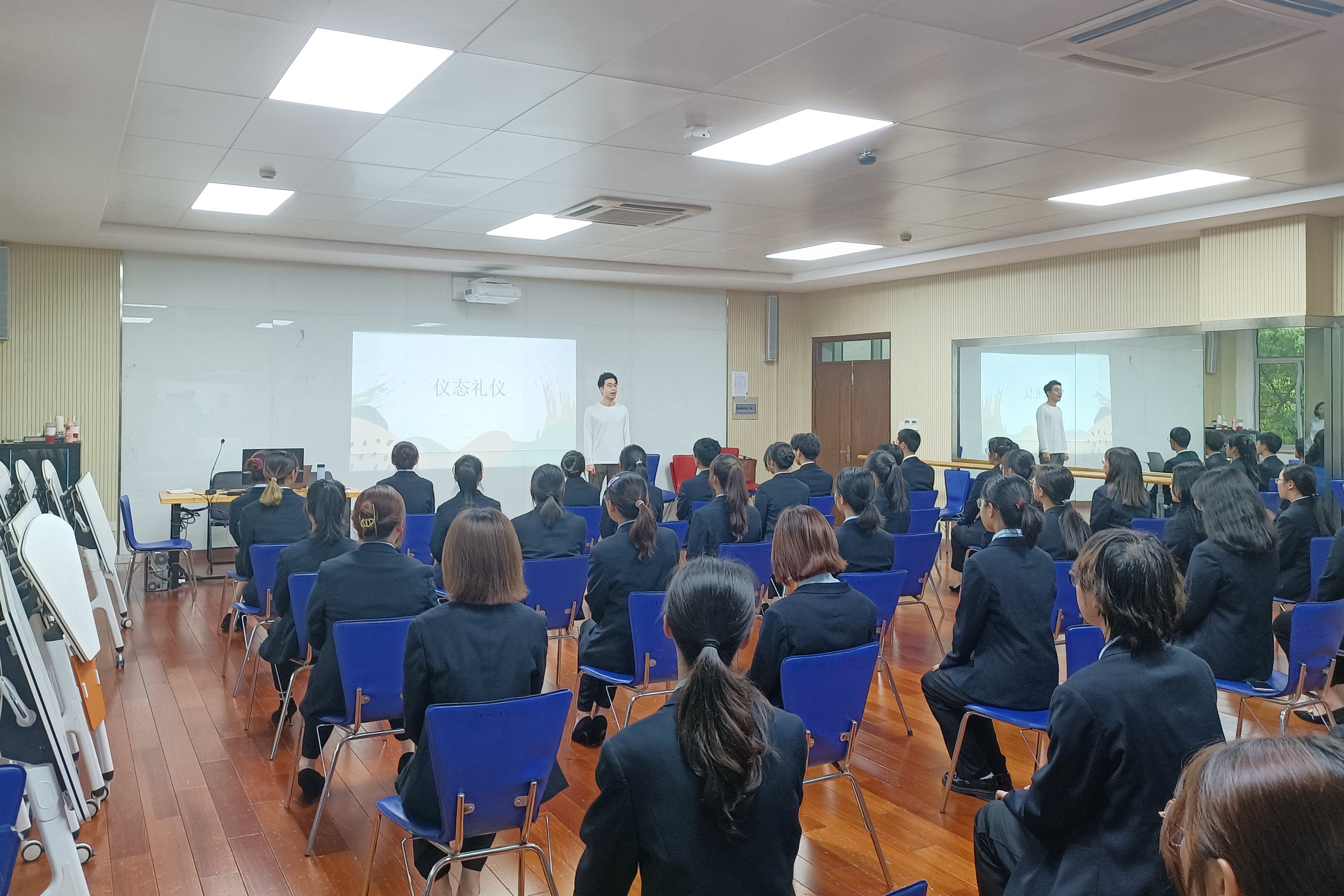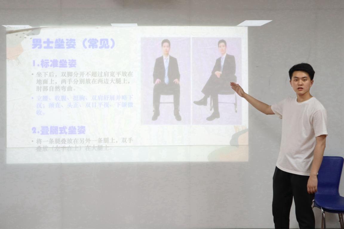 活动伊始,潘宁开门见山地点出了此次活动的主题。一方面,他指出我们要积极地参加礼仪培训活动并在活动中感受到团队协作的魅力。只有当我们拥有了团队协作能力,我们才能逐渐成为一个真正的整体。另一方面,他希望同学们在此次活动中可以学习到一些为自己带来帮助的知识,并做到活学活用,尽可能地把学习到的礼仪知识运用到平常的生活与工作中去。