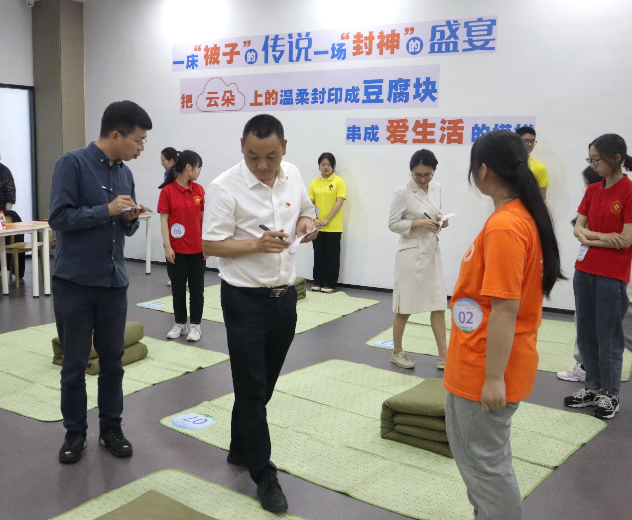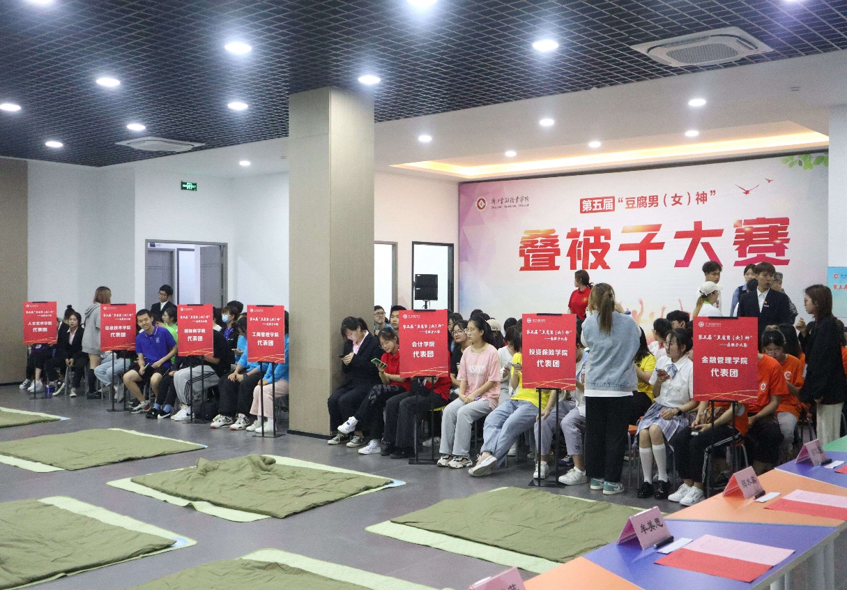 为提高学生的综合素质,进一步推动我院文明寝室建设,扎实开展学生社团劳动教育,5月19日下午14点,浙江金融职业学院学生自律委员会第五届“豆腐男(女)神”叠被子大赛在银星城举行。此次大赛评委由宿舍文明建设科副科长牟美思、紫元下沙服务处副主任郑水宾、学校军训团教官胡军强、浙大新宇金融学院项目部经理傅瑞萍、投资保险学院学工办主任苏浩、信息与互联网金融学院童飞、军事爱好者协会会长徐凌风担任,各学院代表团参与此次大赛。