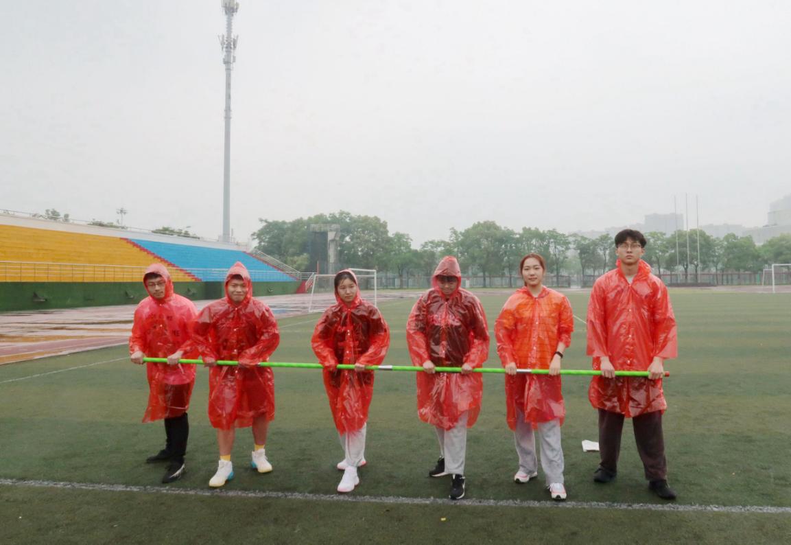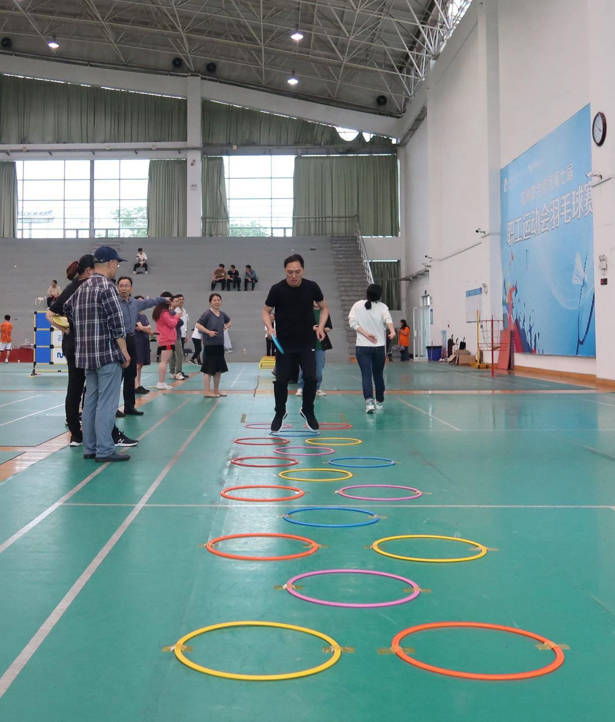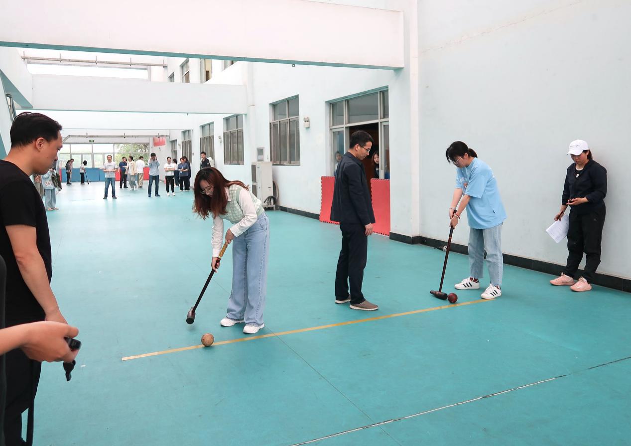 室外开展的是“旋风跑”,每组选手共同握着一根杆子越过种种障碍物,即便风雨交加,他们依旧热情洋溢;室内“踢毽子”接力正热火朝天进行中,在你来我往的过程中,大家重拾童年的乐趣;篮球在空中划过一道优美的弧线,选手们在场上挥洒汗水;“齐心协力”极大地考验团队协作能力,大家脚绑着脚,手挽着手,齐心协力向前冲;“8”字形集体跳长绳则需要选手们找准时机,长绳不断翻飞,考验着选手们的默契;大家背对背,心连心,步调一致,朝着目标共同前进;飞盘接力,是速度与默契的叠加,讲台上的严师此刻大展身手,展现不一样的风采;一颗木球牵动着所有人的心,在木球运动的轨迹中,老师们一同感受体育的魅力。
