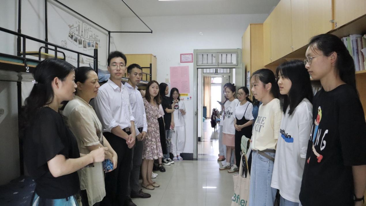 为深入贯彻“以生为本”的育人理念,进一步了解会计学子的学习和生活状态,6月9日中午12:30,会计学院副院长张薇、会计学院党总支副书记张惠君、会计学院学工办副主任潘宁以及辅导员金恩芳、叶君红、颜路路、李孟一行人走入学生宿舍,共话学生成长。