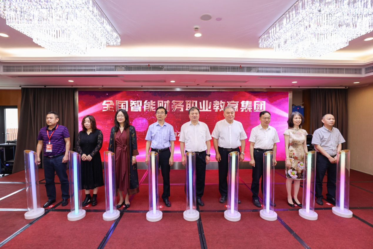 随后,举行全国智财务职业教育集团成立启动仪式,由九位领导嘉宾应邀上台共同开启全国智能财务职业教育集团成立仪式的启动按钮,全场响起了热烈的掌声。