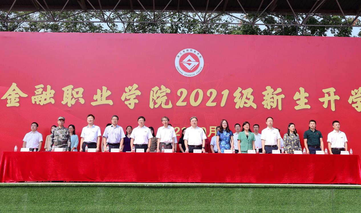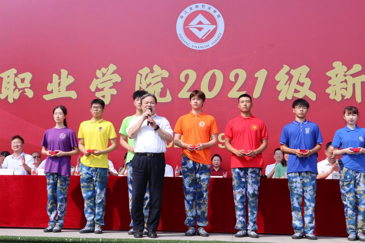 典礼上,校党委书记周建松为2021级新生代表佩戴浙江金融职业学院校徽,并宣布浙江金融职业学院2021级新生“千日成长”工程正式起航。