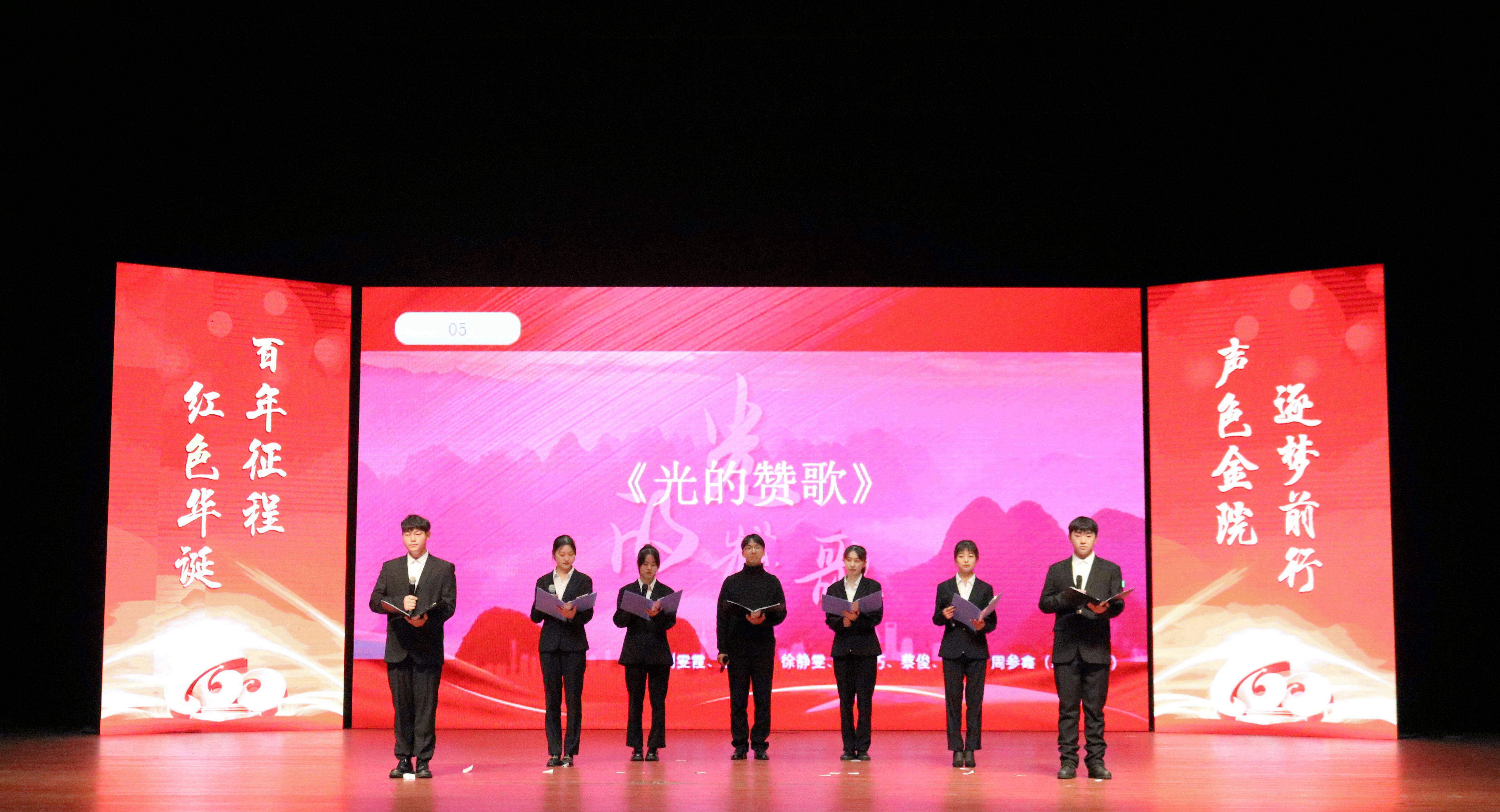 此次“金音杯”朗诵比赛的举办,不仅为同学们提供了展示自己的舞台,锻炼同学们的朗诵能力,更是颂扬了祖国今日蒸蒸日上的盛况。希望正值韶华的同学们怀着一颗赤子之心,为新时代开辟更宽广的道路。