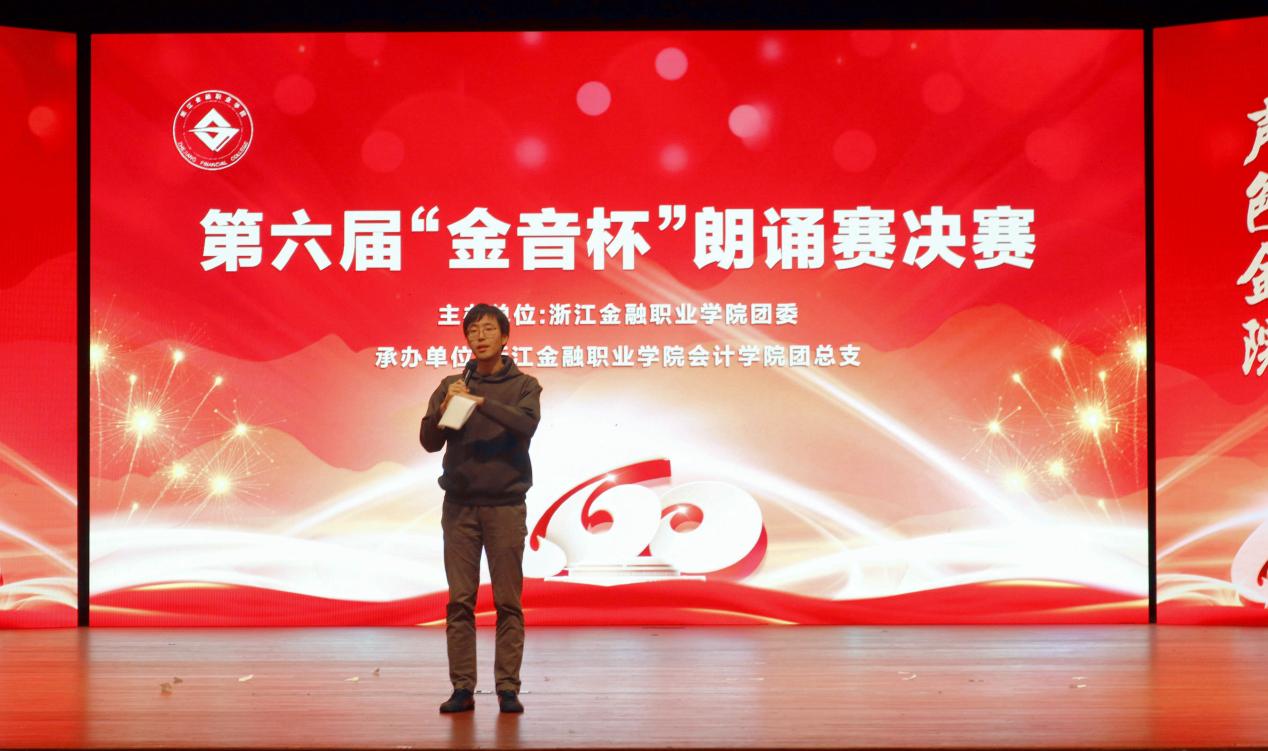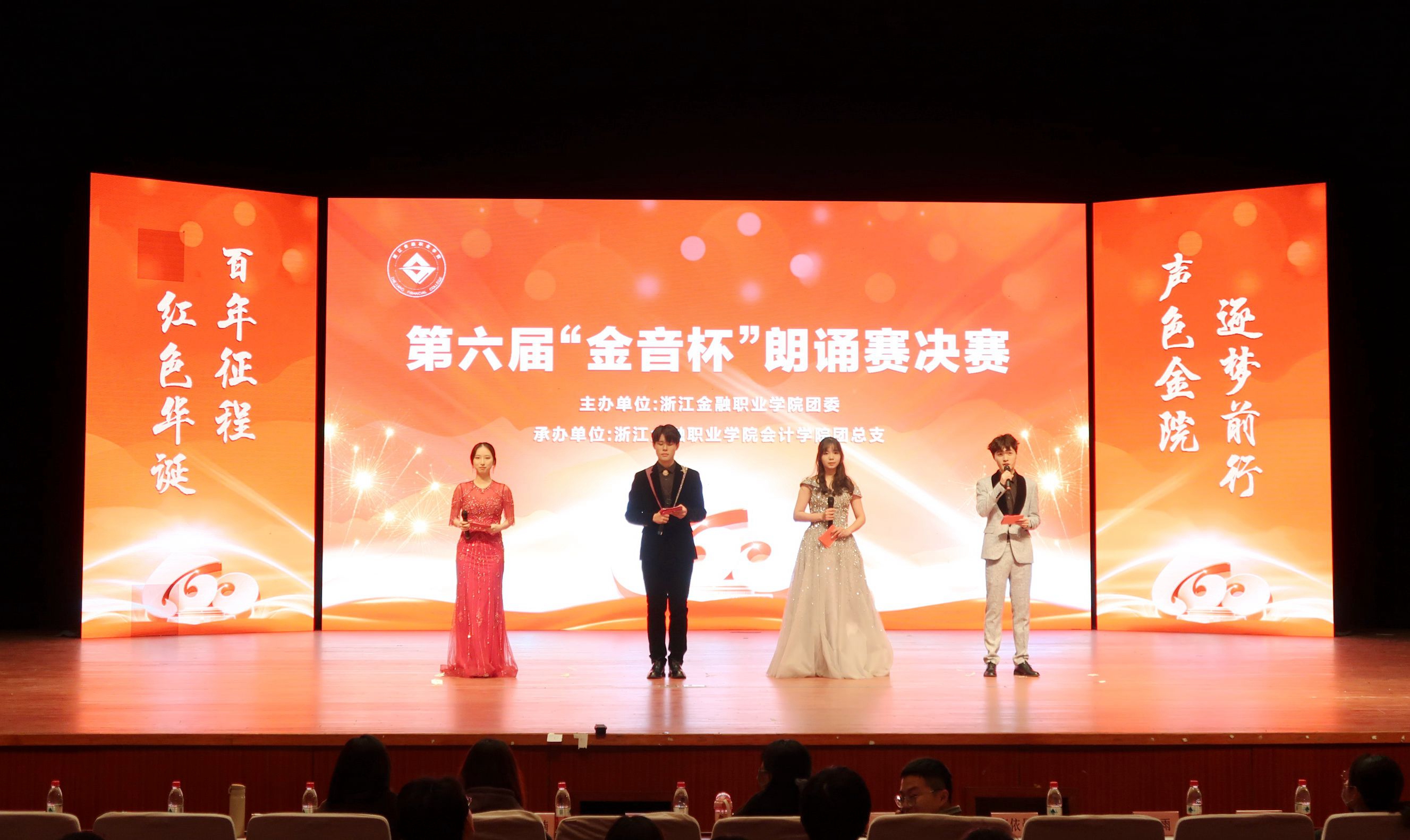 为庆祝中国共产党百年华诞,丰富同学们校园文化生活,10月21日18点,由浙江金融职业学院团委主办,会计学院团总支承办的第六届“金音杯”朗诵赛决赛在金葵花艺术中心顺利举行,出席此次活动的有会计学院团总支书记、学工办副主任潘宁,会计学院辅导员颜路路、李孟、栾泽皓以及各二级学院评委和学生。