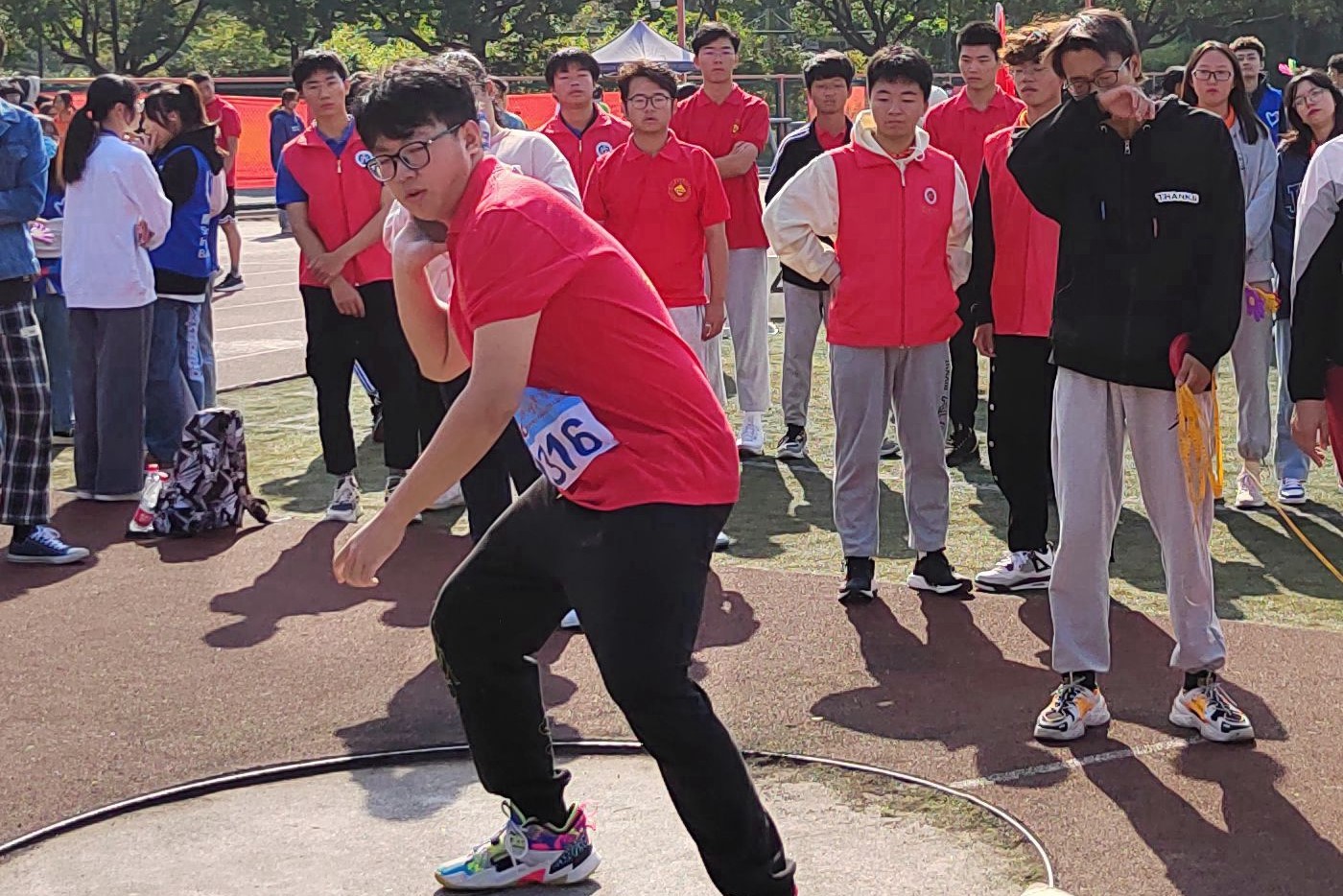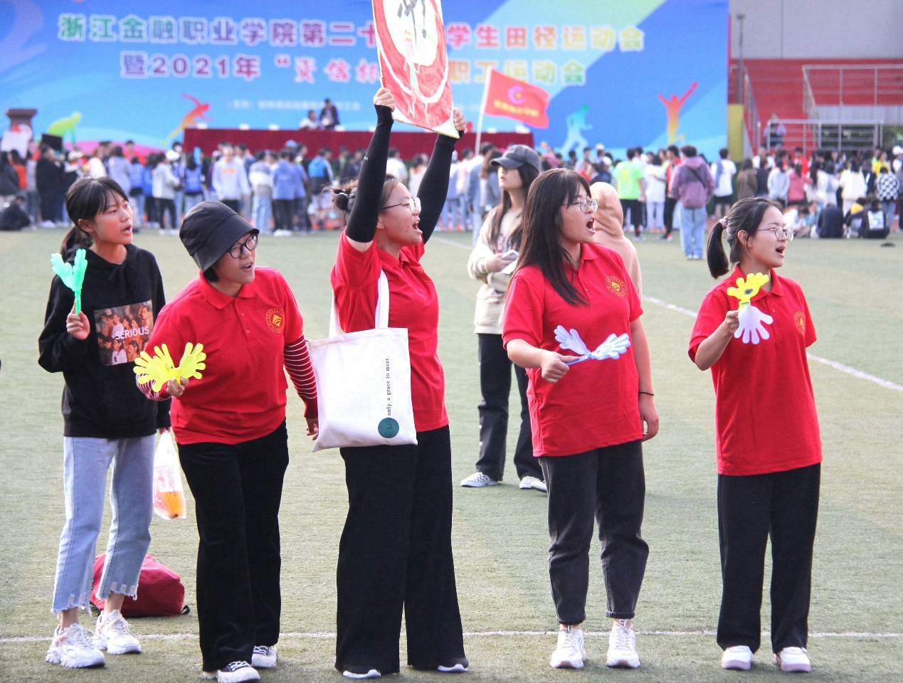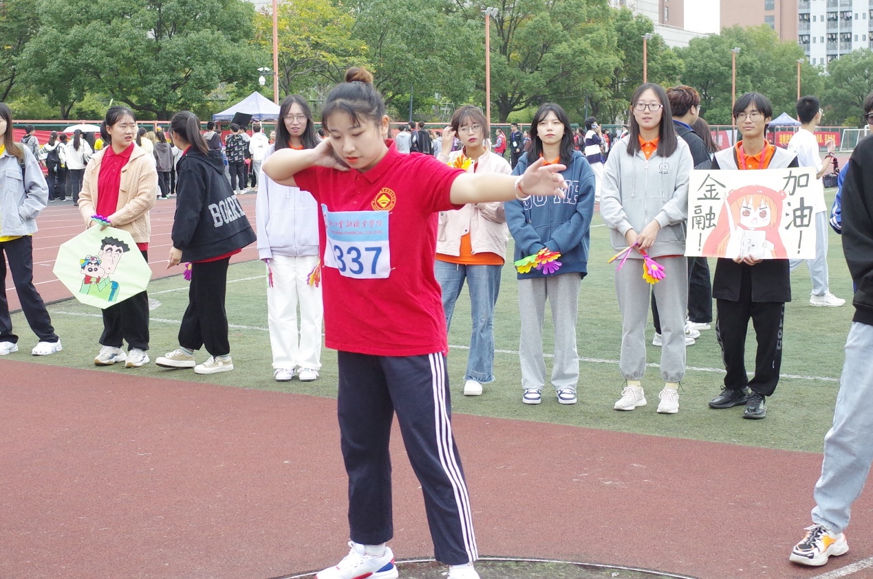 除了运动员们的拼搏奋斗,赛场上那一个个红色的身影也格外引人注目。鲜艳的红衣与塑胶跑道相呼应,会计学院的志愿者们兢兢业业,让赛场上疲惫的身躯有了坚实的依靠,书写属于会计学院的特别关怀。
