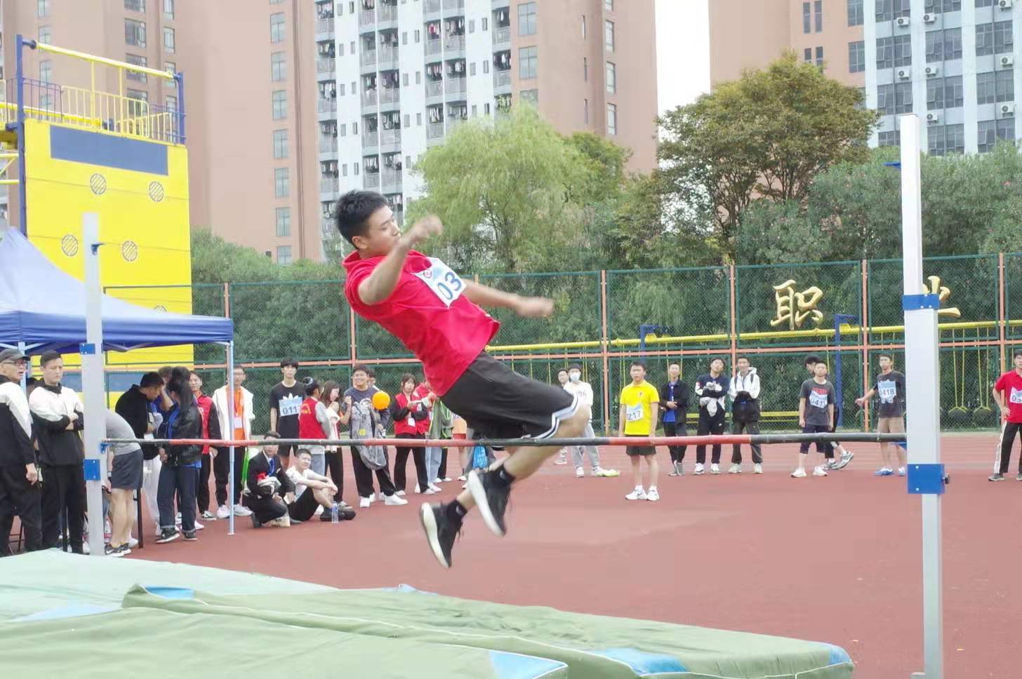 运动员们注视着前方的标杆,蓄势待发,一跃,身体在空中划出一道完美的弧线。刹那间,欢呼四起。时间转瞬即逝,而那干净利落的动作被记录,永远定格。那一跃,跃出了属于青春的自信!