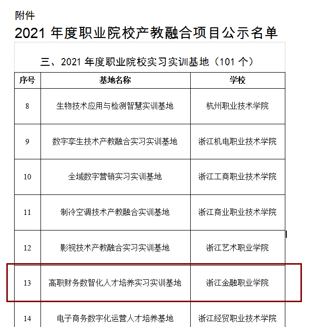 我院“高职财务数智化人才培养实习实训基地”成功入选为浙江省2021年度职业院校产教融合实习实训基地项目!