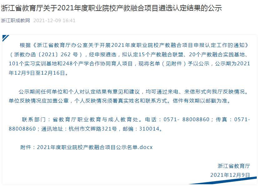 近期,为深入贯彻全国职教大会精神,全面落实《浙江省职业教育“十四五”发展规划》和《浙江省深化产教融合推进职业教育高质量发展实施方案》,强化产教“五个对接”,形成职业教育产教深度融合发展新生态,浙江省教育厅办公室面向全省职业院校拟建设15个左右产教融合联盟、20个左右产教融合实践基地、100个左右实习实训基地及250个左右产学合作协同育人项目,在全省职业院校自主申报的基础上,经专家评审,会计学院“高职财务数智化人才培养实习实训基地”成功入选为浙江省2021年度职业院校产教融合实习实训基地项目!