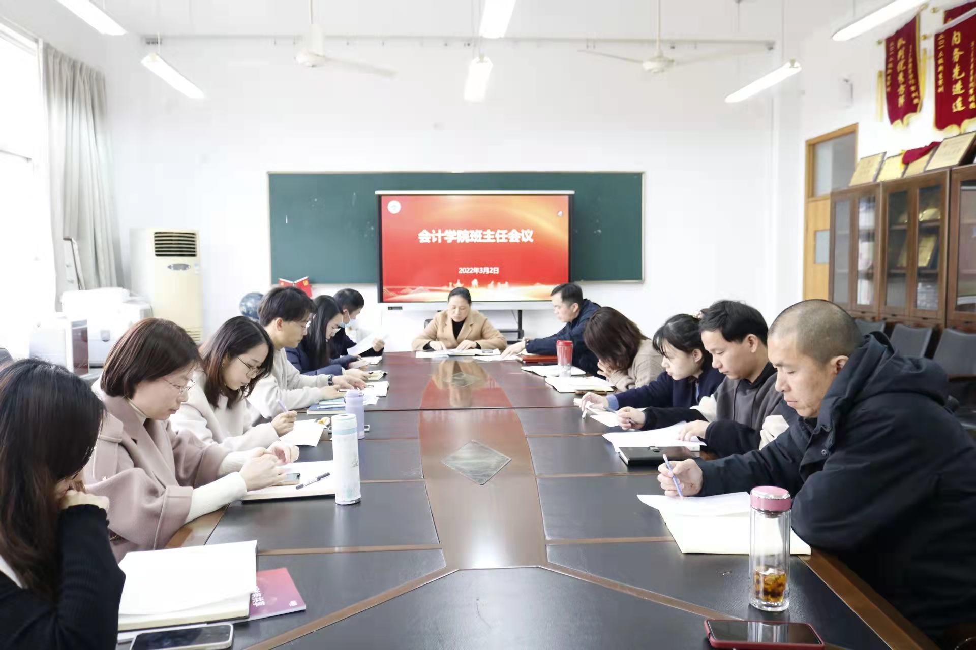 为推动新学期各项学生工作的有序开展,会计学院于3月2日下午召开班主任工作会议,2020级、2021级班主任及辅导员参与本次会议。本次会议由会计学院党总支副书记张惠君主持。