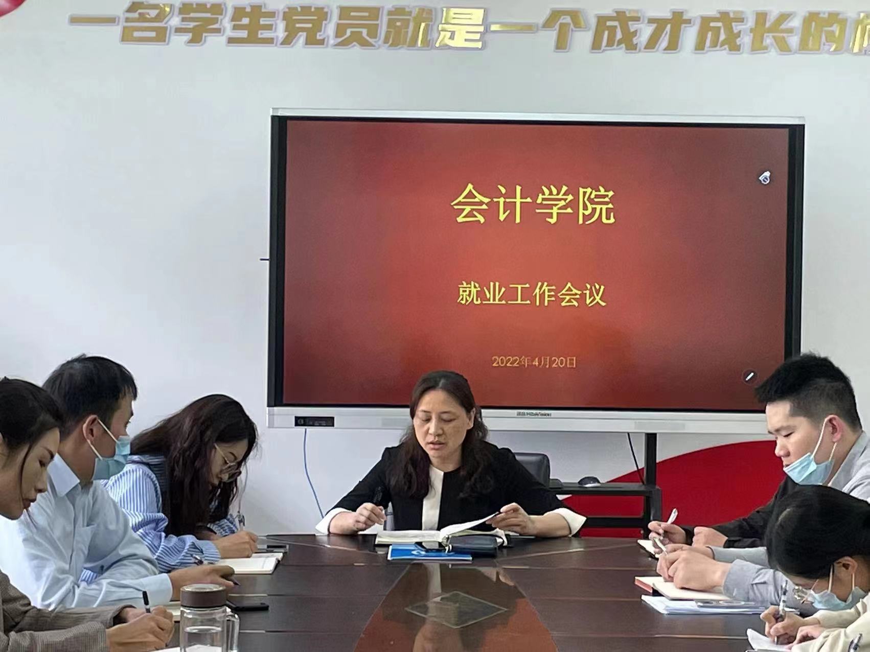 为了切实了解学生的就业情况,推进学生就业工作。4月20日下午1点30分,会计学院于7218会议室召开就业工作会议。党总支副书记张惠君主持会议,各教研室主任、全体辅导员和2019级、2020级各班班主任参加了会议。