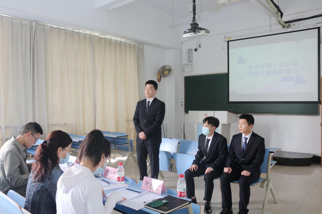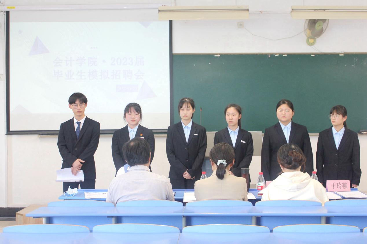 为了让同学们进一步了解求职面试的技巧和流程,培养学生们在面试中的应变能力、抗压能力,为会计学院2023届毕业生求职面试做好准备。会计学院于4月27日13点30分,在7号楼开展模拟招聘会活动。由会计学院全体教职工担任本次模拟招聘的面试官,我院2023届毕业生(订单班意向生)参加本次模拟面试。