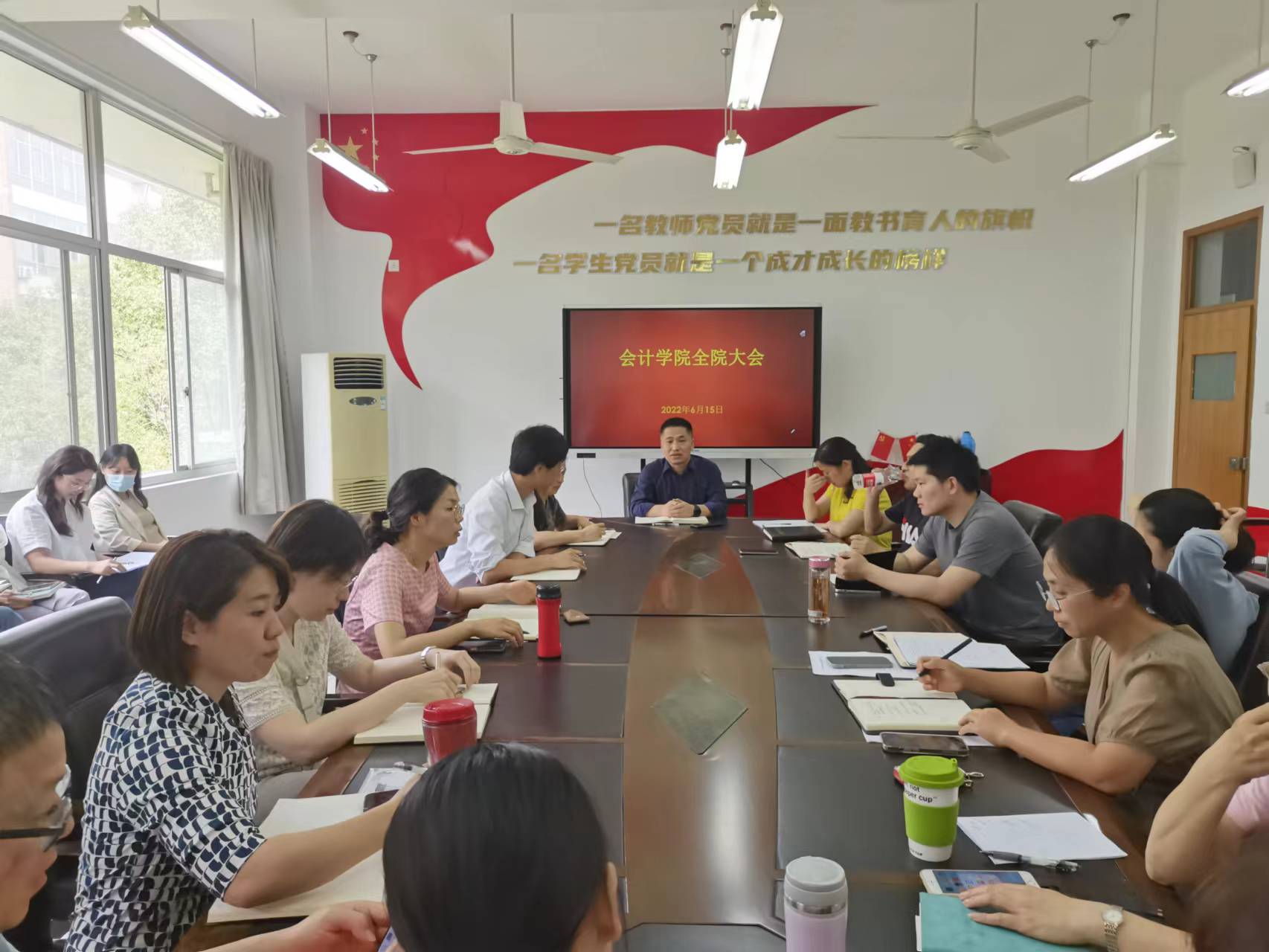 6月15日下午,会计学院在7218会议室召开全院大会,专题传达学习贯彻学校党委书记金杨华来学院调研讲话精神,全体教师参加了本次会议。