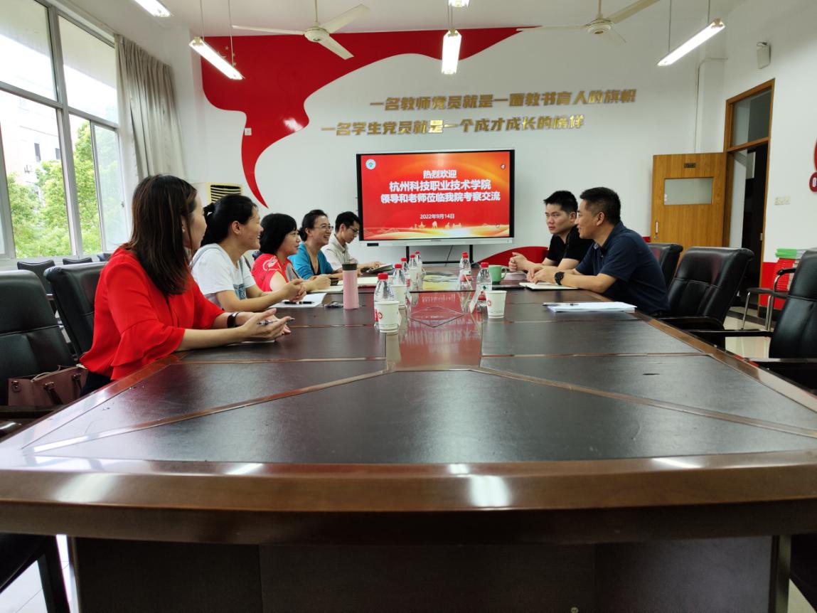 9月14日,杭州科技职业技术学院科技处处长陈晨、商务管理学院院长陈长英等一行来我院交流考察。会计学院党总支书记、院长王忠孝,办公室主任柴向卫,会计教研室副主任孙成龙在7218会议室进行接待,双方进行了友好而亲切的交流。