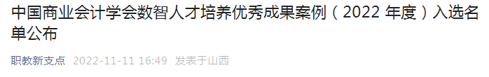 2022年11月9日,中国商业会计学会数智人才培养优秀成果案例评选结果公布,全国共有70项案例被评为中国商业会计学会数智人才培养优秀成果案例,并入选中国商业会计学会数智人才培养优秀成果案例集,会计学院《打造产教融合有机体,共育数智时代新人才——校企共建“用友·新道云财务学院”》案例成功入选!
