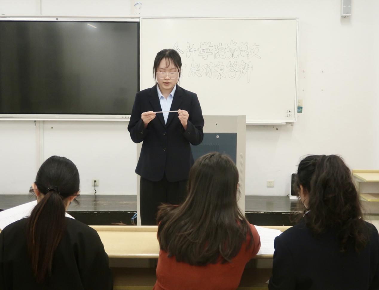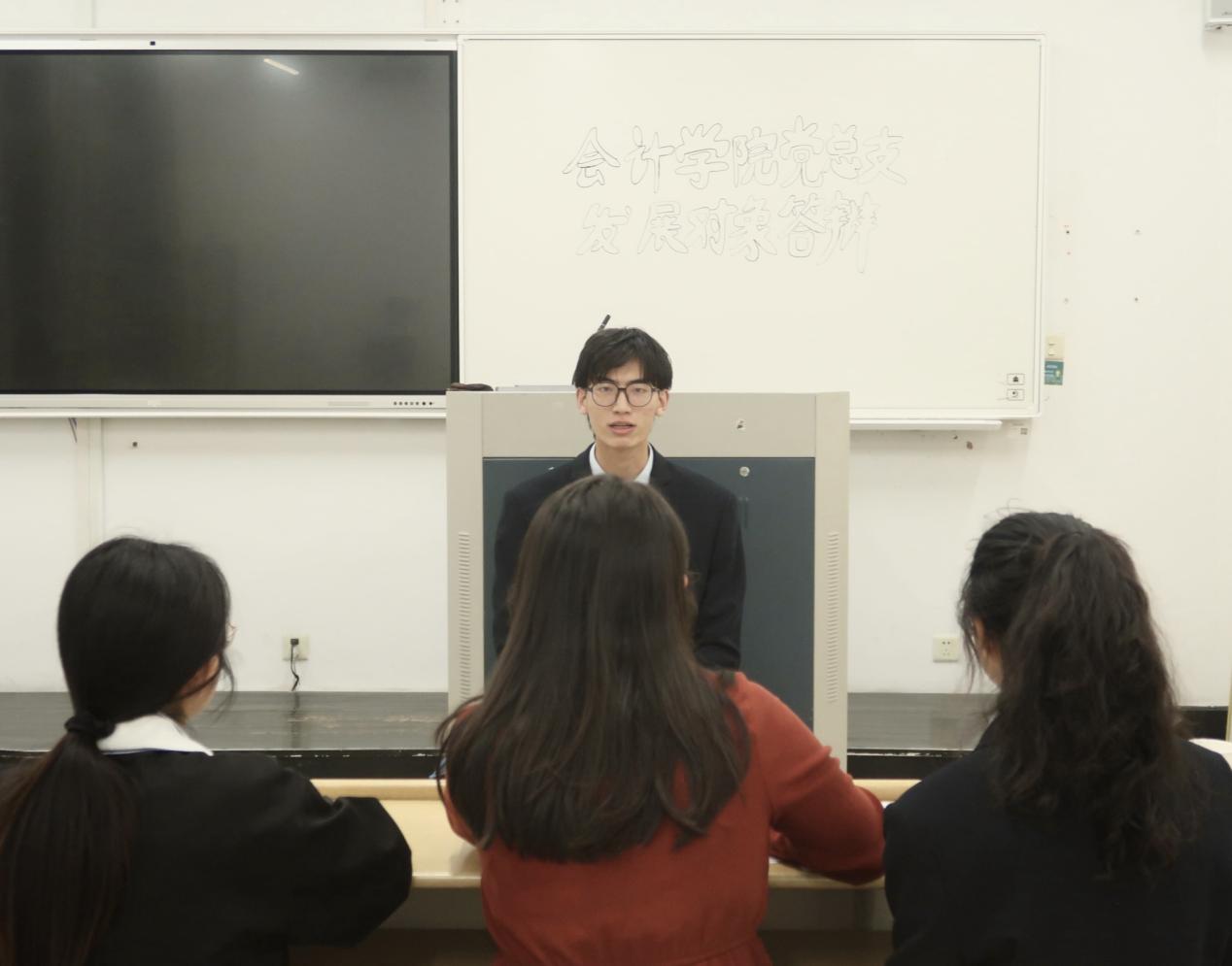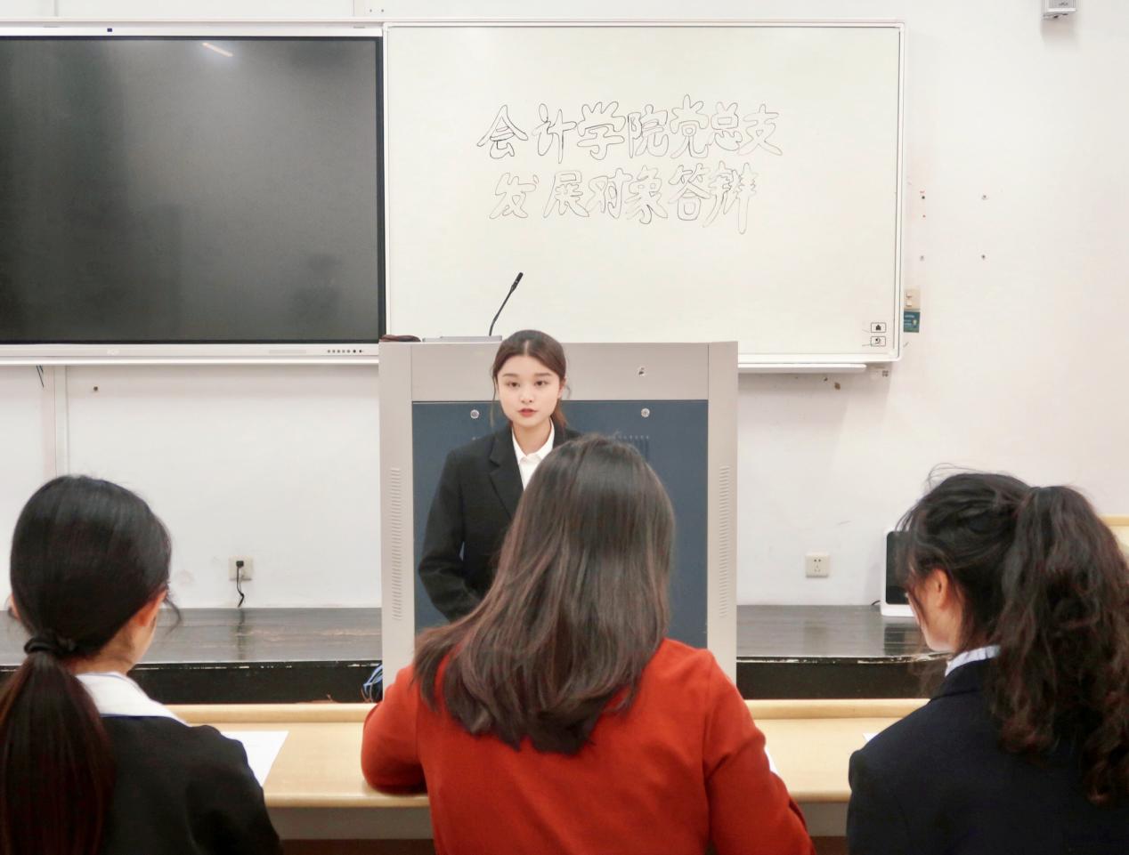为确保党员发展质量,更激励发展对象进一步明确入党初心,及时认识自身不足并提升自身党性修养,会计学院党总支在4月27日于7322、7326、7122、7126教室举行发展对象答辩会。此次答辩会的评委有党员教师叶君红、颜路路、栾泽皓、袁炜,以及学生党员吕贝,叶祎汝,阮齐佳、张鲁玥。