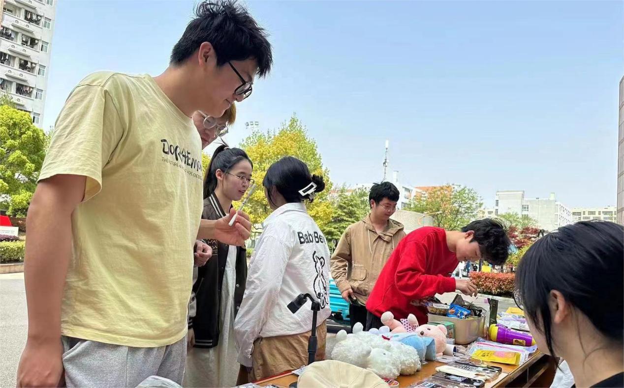 活动正式开始之后,现场的同学们拿着闲置物品在各个摊位间来回穿梭,不少同学遇到心仪的物品后便与摊主表达想法,积极沟通。活动现场热闹非凡。很多路过的同学也被横幅和海报上的新颖主题吸引,翻书包掏口袋,希望能找到用以交换的物品,甚至有同学表示要回寝室取东西参与活动。越来越多的人闻声而来,同学们都热情高涨,现场其乐融融,欢声笑语一片。经过一下午活动的开展,原本摊位上的物品尽数“翻新”,活动成果显著。