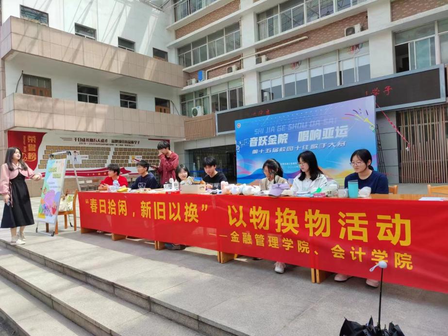 为促进同学们的交流与沟通,弘扬中华民族勤俭节约的传统美德,更好地响应“构建资源节约型环境友好型社会”的政策方针,会计学院与金融管理学院于4月12日下午在浙商发展中心前开展“春日拾闲,新旧交换”以物换物活动。