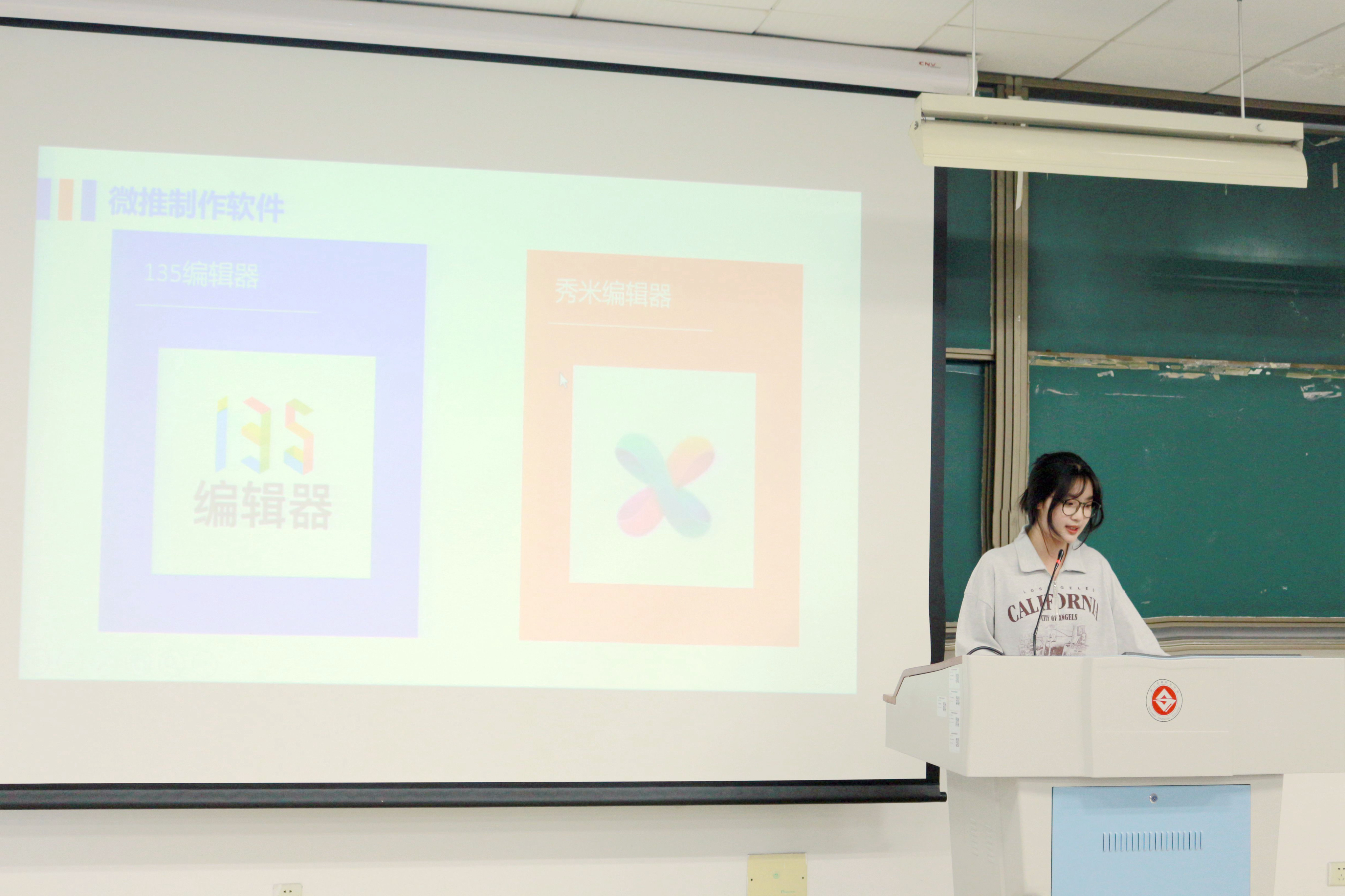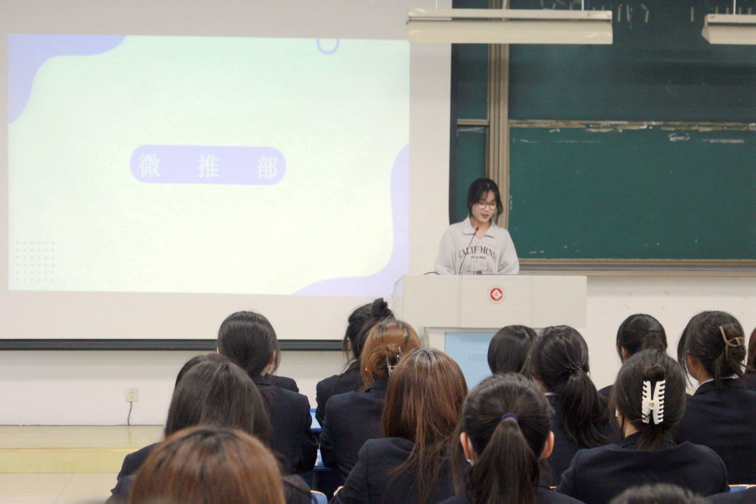 随后由杜悦悦讲解了微推的制作软件、要求和流程,还为同学们操作演示了微推文章的制作到发表的过程,让同学们真切地了解到了微推的具体工作。