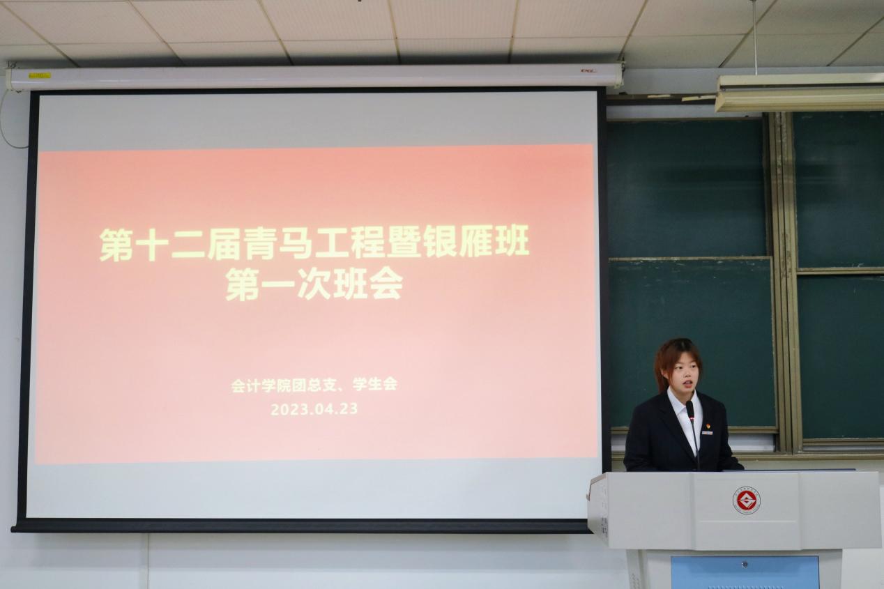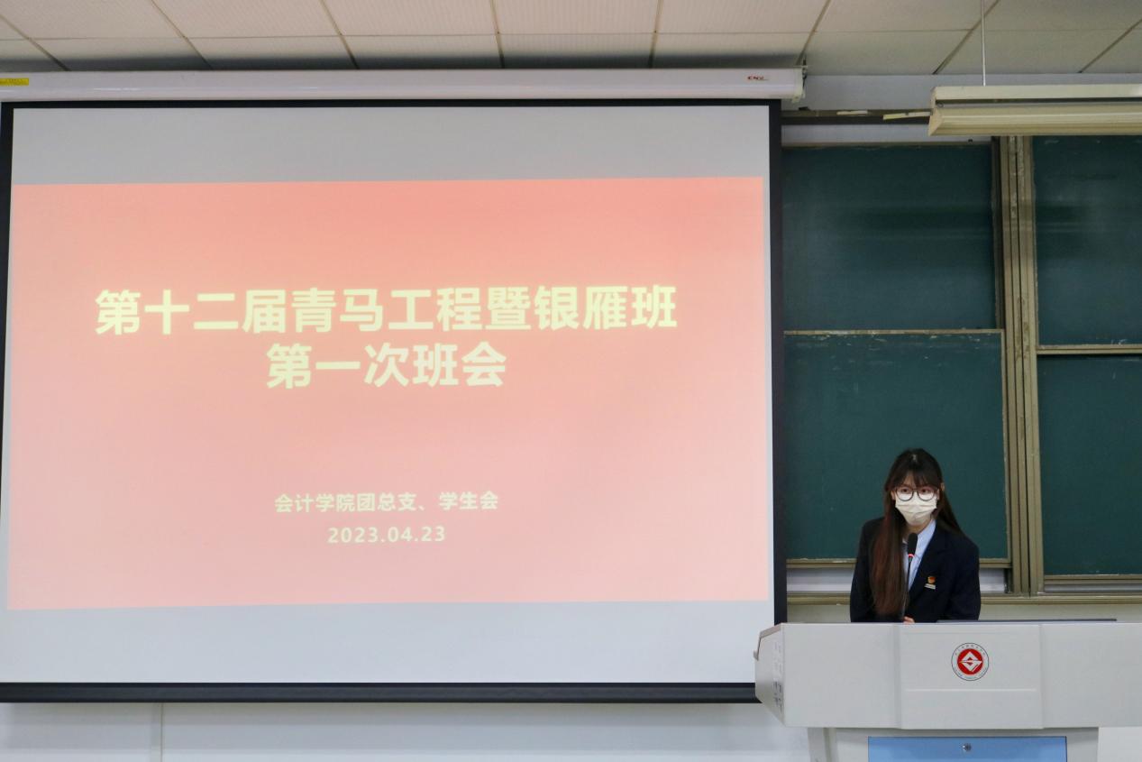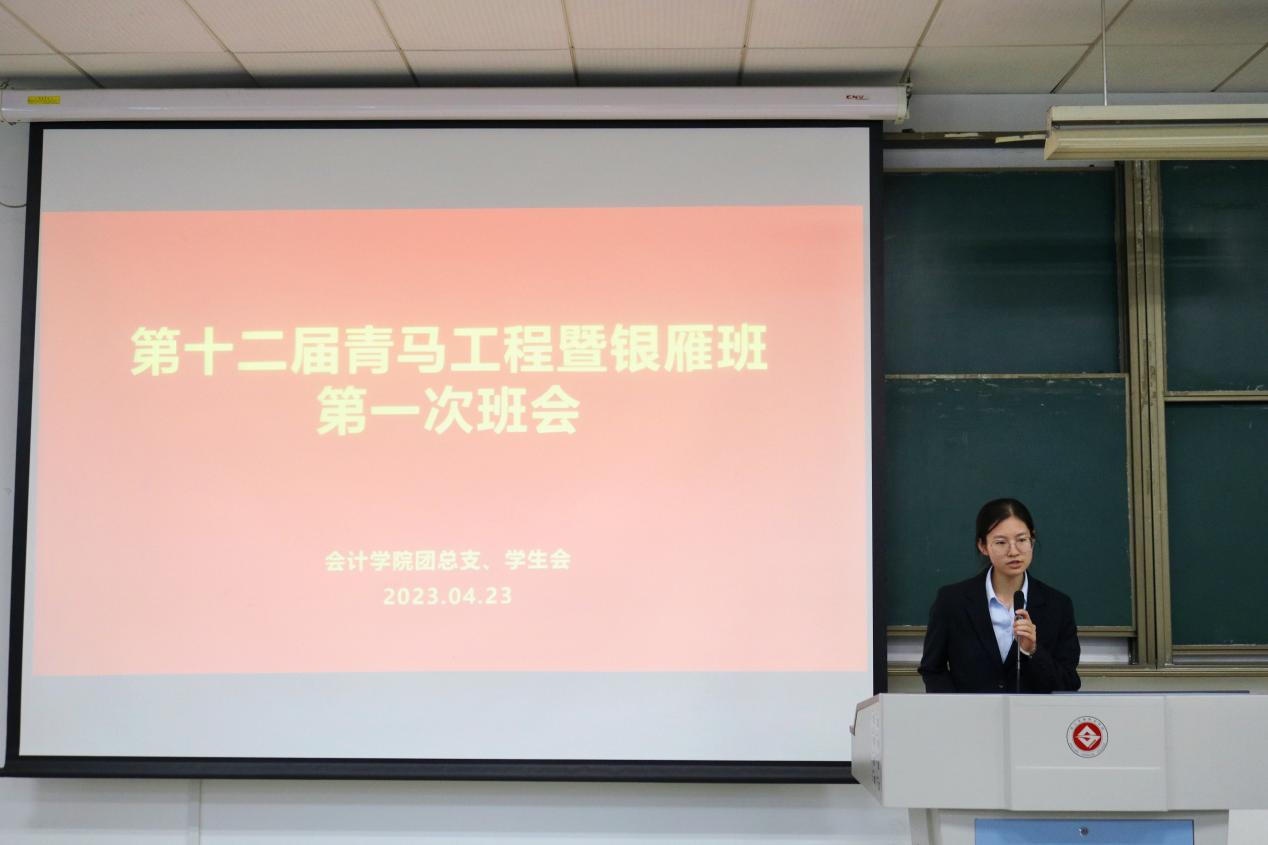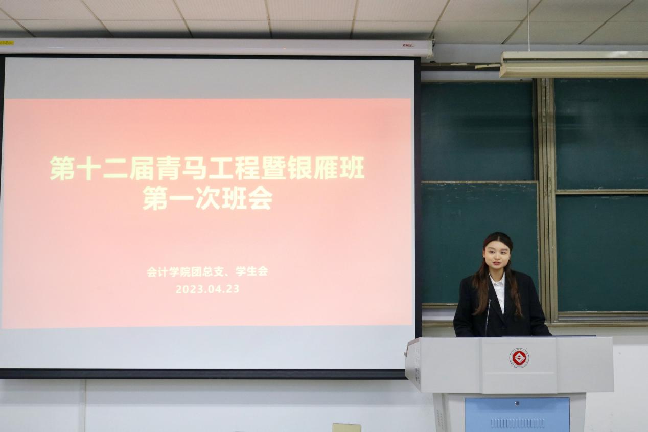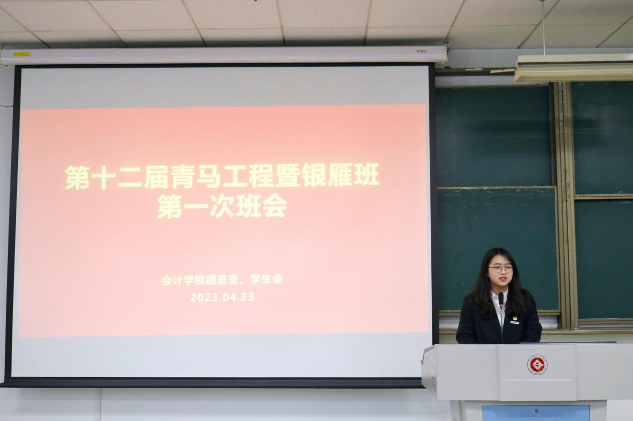 为提高新一届“银雁班”成员的凝聚力,增强组织性、纪律性,同时增强同学们的团结意识,会计学院于4月23日在 7219教室召开“银雁班”第一次班会。出席此次班会的是2021级团学负责人和第十二届“银雁班”全体成员。本次班会由第十一届“银雁班”班长王琳琪主持。