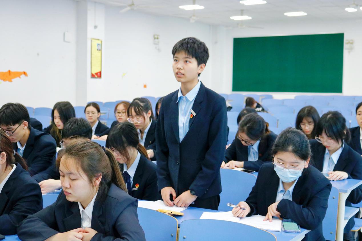 会计211的陈冰洁就第二个问题抒发自己的见解:思想上与时俱进,积极向党组织靠拢;学习上不能懈怠,成绩优异;生活上与人为善,乐于助人;工作上守好本职,善于倾听同学意见,组织策划学生喜闻乐见的活动。