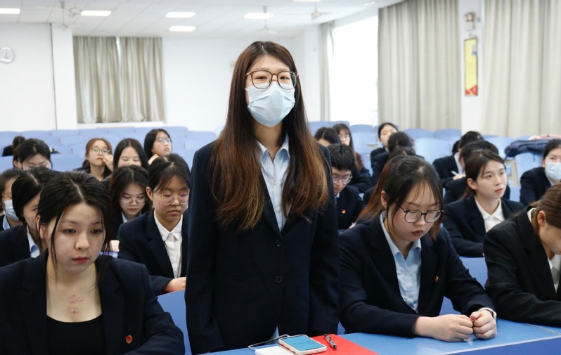 会计213的王琳琪就第一个问题表达自己看法:大学生是祖国未来的建设者和接班人,大学生党员的先进性应当体现在日常生活、学习生活等方面。大学生党员在学习专业知识的同时也需要不断提高政治理论素养,日常生活中严格遵守党章要求,严以律己,宽以待人,积极帮助别人解决困难。