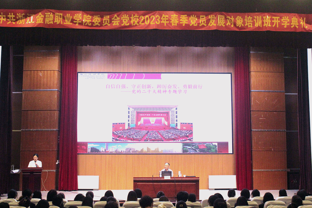 为深入学习宣传贯彻党的二十大精神,进一步加强对入党发展对象的培养教育,提升发展对象的政治觉悟和理论素养,浙江金融职业学院于5月17日晚在明理报告厅举办发展对象党课第二课,本次党课由刘福州主讲,全体发展对象参与了此次活动。