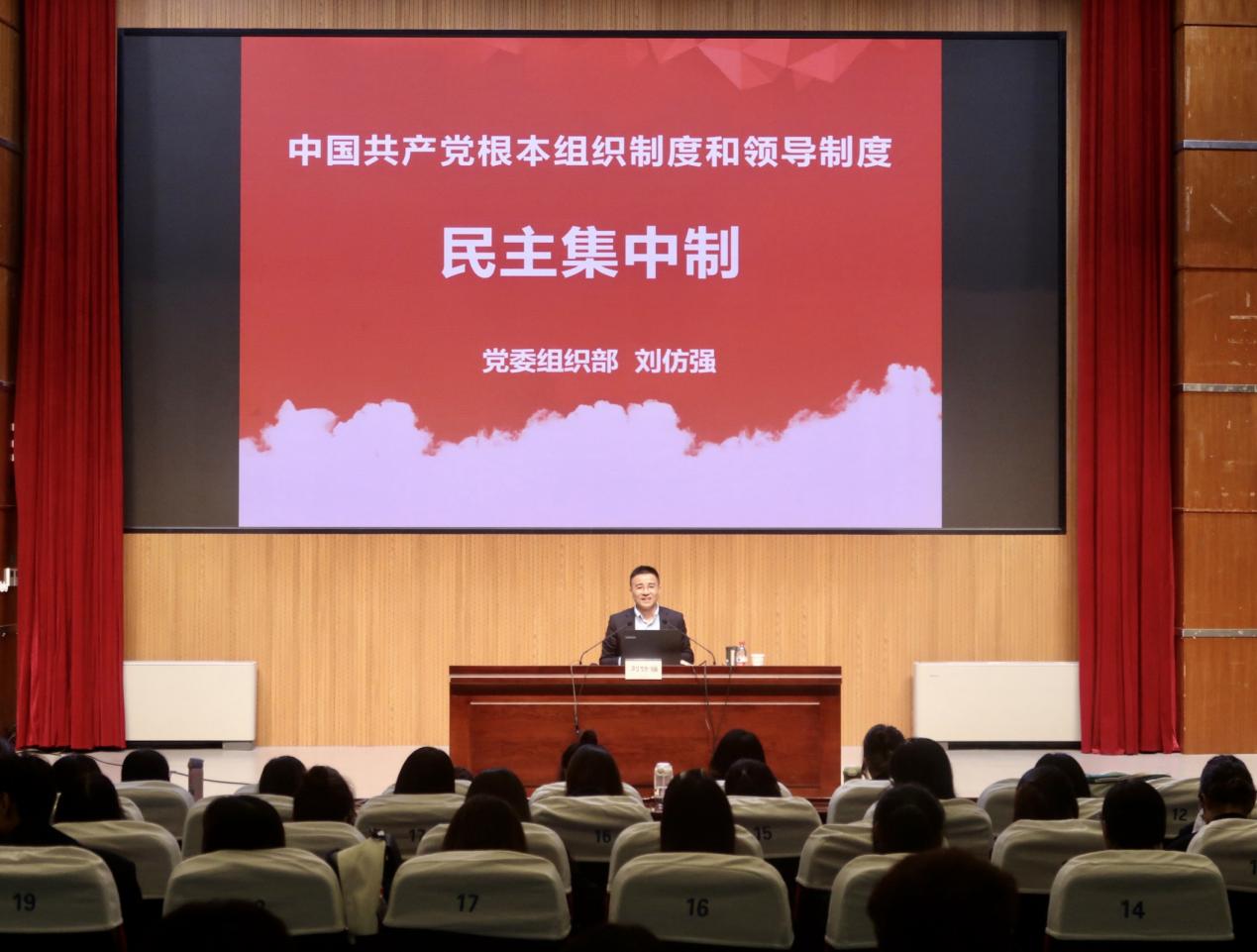 为学习贯彻习近平总书记关于党章的重要论述,让发展对象了解党的组织原则,自觉遵守党的组织原则和相关纪律,会计学院于5月22日晚在明理报告厅举办发展对象党课第八课,本次党课由党委组织部的刘仿强主讲,全体发展对象参与了此次活动。