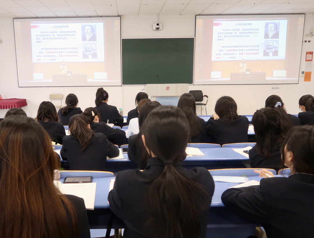 本次党课叶丛丛主要围绕“青春因担当而美丽”这一主题展开,她先让同学们了解了当代青年与社会的关系,让同学们认识到只有成为始终活跃着怀抱崇高理想、充满奋斗激情的青年人才能让党依旧保持蓬勃生机。