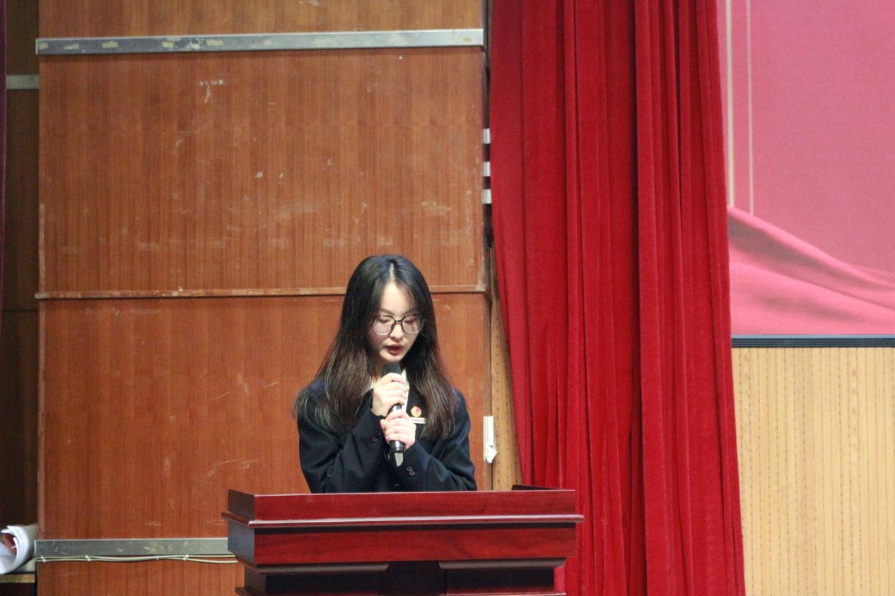 学员代表工商管理学院营销211班陈安琪同学发言。她表示,作为发展对象,一定要时刻保持思想上的先进性和行动上的超越性,并呼吁全体学员在培训中做到以下三点:一、以学铸魂补足精神之钙,心有所信,方能行远。坚持理论学习,将理论学习往深里走、往实里走、往心里走。二、以研促行,以行求知。在理论学习的基础上,走出校门,接触社会,了解国情。三、以民为本,践行初心使命。牢记全心全意为人民服务的根本宗旨,主动走到有需要的地方去,积极投身志愿服务。以优秀党员为榜样,清晰认识自身的不足与差距,在实践中奋进,积极向党组织靠拢,争取早日成为党组织的一员。