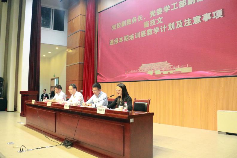会议第二项,党校副教务长、党委学工部副部长施技文老师通报本期培训班的教学计划以及相关的注意事项。她首先对参加本次开班仪式的同学表示祝贺,并对同学们的发展和成长寄予深切希望。其次对考勤纪律和结业要求进行了简单介绍,她提醒学员须认真参加党课学习,按时考勤,做好课题笔记,认真参与专题讨论。最后她着重强调了政治性和纪律性两点,同时表明党课学习的过程中要做到学思结合、知行合一、学有所获,为加入中国共产党做好积极准备。